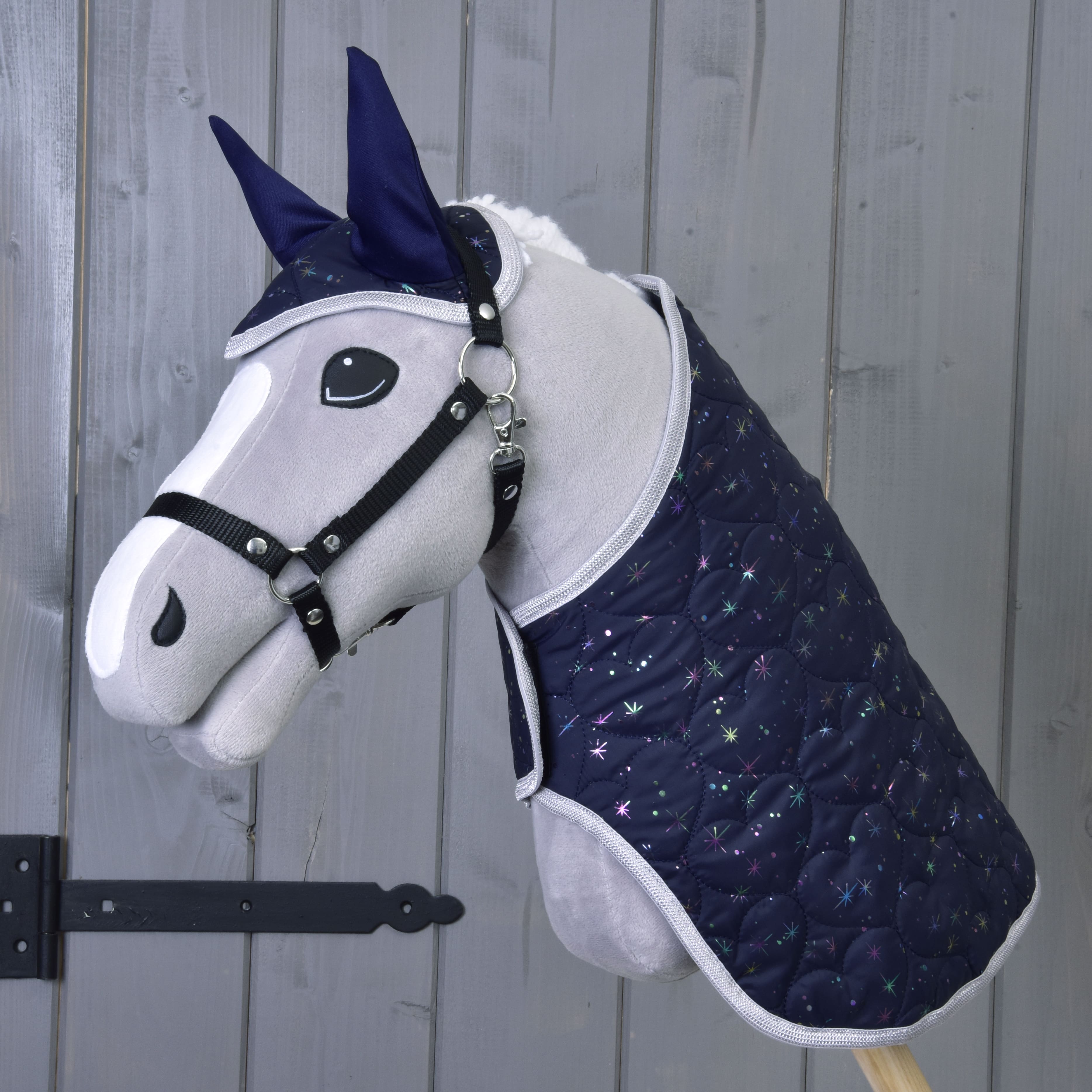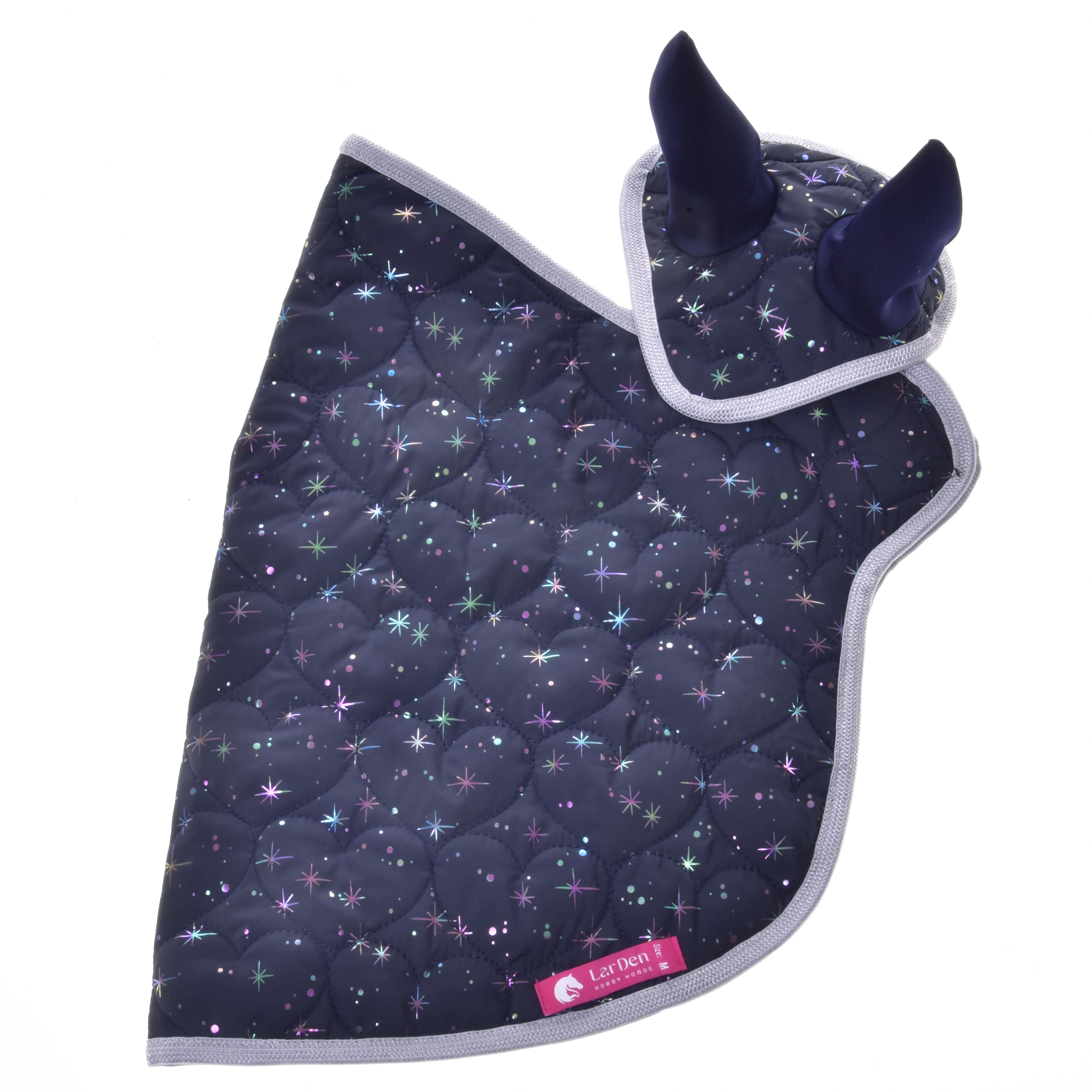 Beautiful blanket and ear bonnet set for your Hobby Horse that not only serves as a decoration for your horse, but also keeps him warm and protects him from pesky insects