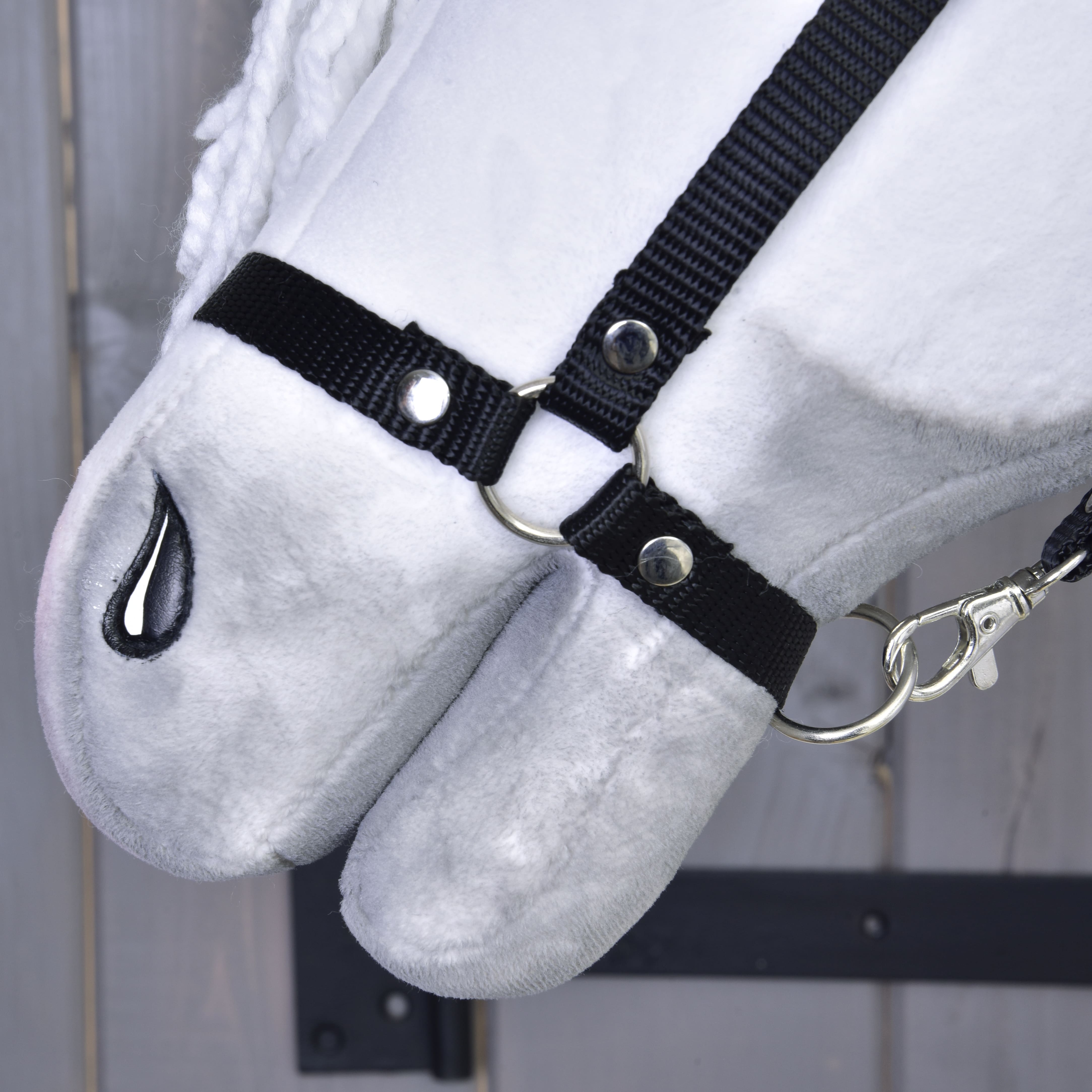 Hobby Horse Elektra is wit als sneeuw. Ze straalt onder het zadel en in het tuig.