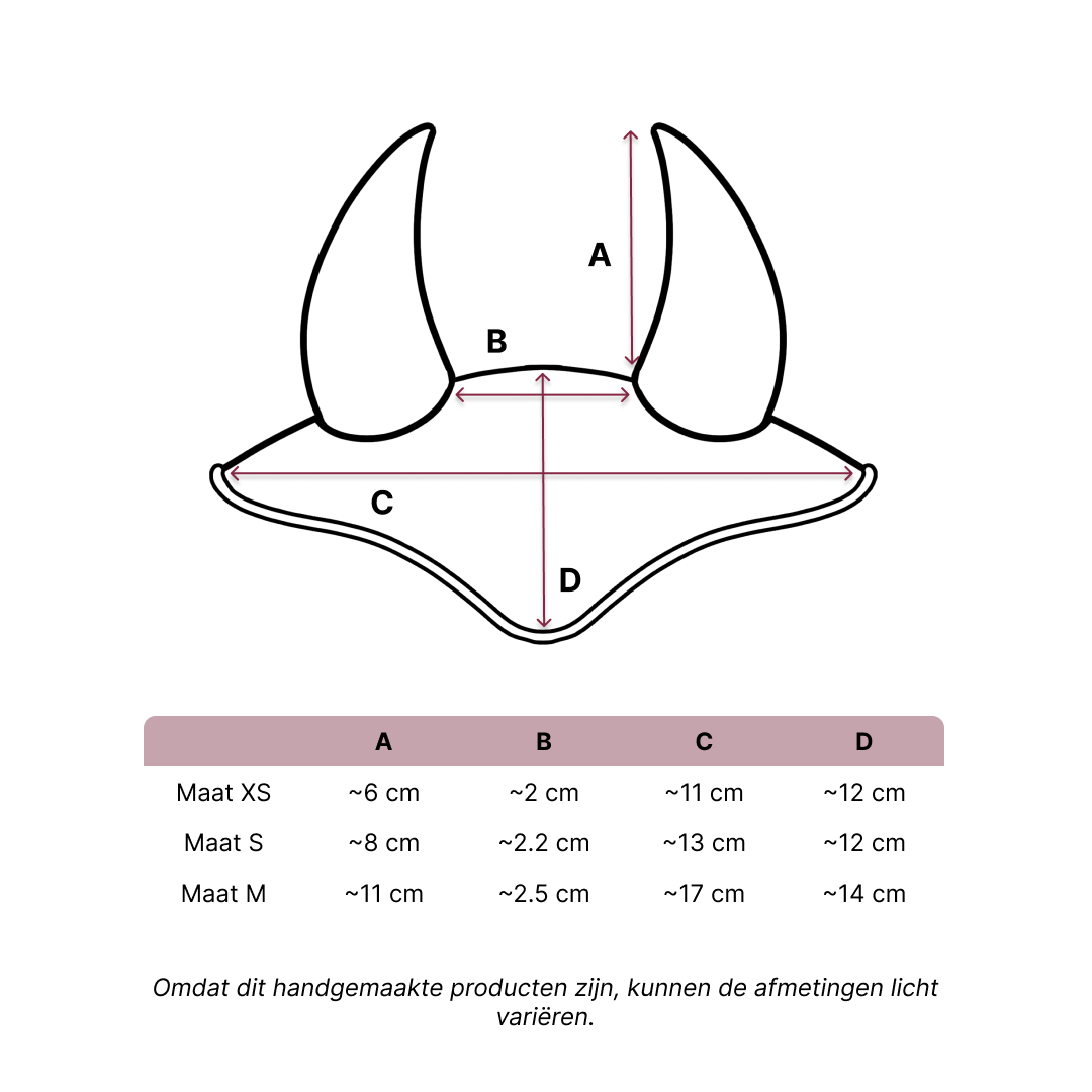 Onze Hobby Horse oornetten zijn verkrijgbaar in de maten S en M en passen perfect op LarDen paarden. Kies gewoon de juiste maat voor jouw paard! Weet je niet zeker of het de juiste maat is of heb je een ander Hobby Horse model? Bekijk dan de gedetailleerde afmetingen op de afbeelding.